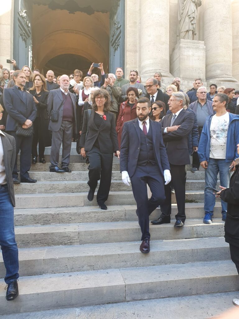 (Pascal Schembri)–Martedì 30 settembre, nella Chiesa di San Rocco di Parigi, dedicata agli artisti, dalle ore 14:30 alle 16:30, è stata omaggiata per l’ultima volta, in forma privata, la nostra cara Claudia Cardinale. Diversi artisti hanno recitato brani della  storia personale della  grande attrice italiana. Erano presenti diverse personalità della politica e del cinema francese, l’ambasciatrice Italiana a Parigi, il direttore dell’Istituto  Culturale. Una cerimonia  molto commovente per tutti i presenti. Alla fine due cantanti siciliane si sono esibite in due brani folcloristici. Dopo che il carro funebre era partito per portare la salma alla sua ultima dimora, sua figlia Claudia ha invitato i parenti e gli amici più vicini ad andare in un ristorante vicino la chiesa San Rocco, per offrire una coppa di champagne in memoria della sua adorata mamma , la cui  immagine resterà  per sempre nei nostri ricordi.