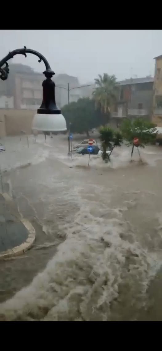 La zona di Via Agrigento è impraticabile, così come Via Capitano Callea dove le macchine nuotano; Via Umberto è un fiume in piena che si riversa verso il collettore che conduce al Vallone Cicchillo.