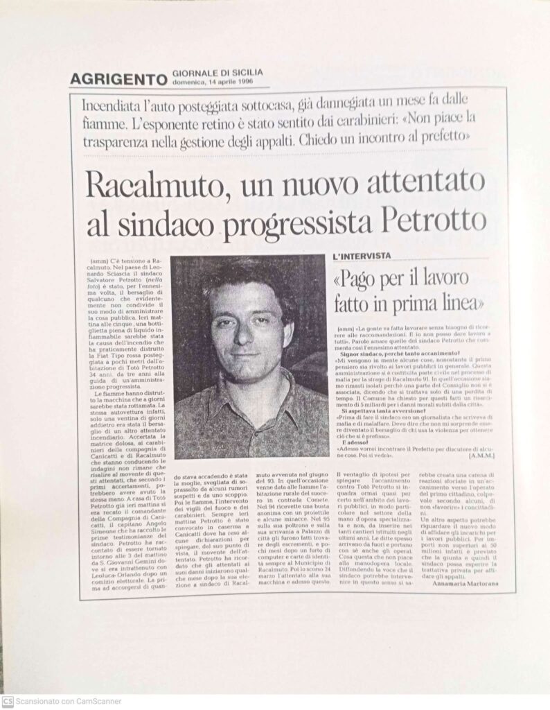 Dovevo pagare il prezzo di avere detto determinate verità e di essermi costituito, da sindaco, parte civile contro alcuni mafiosi pentiti, ‘ma non troppo’ che, tra l’altro, sulla scomparsa del capo ufficio tecnico del Comune di Racalmuto, del quale si è perso traccia a partire dal 1998 (lupara bianca per intenderci) sull’omicidio di un giovane avvenuto qualche anno dopo, e su tante altre cose, comprese le intimidazioni e gli attentati che hanno fatto contro di me, avevano detto forse una serie di fesserie.