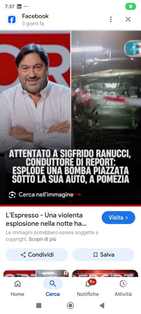 Altrimenti, se parli e denunci troppe cose pubblicamente, come fa Ranucci, non è che fanno ricorso solo alle querele ed alle denunce calunniose. A chi sta al potere si aggiunge magari qualche, si fa per dire , ‘scalmanato’, invogliato dal clima di delegittimazione, che ti mette pure una bomba sotto la macchina, per farti saltare in aria.