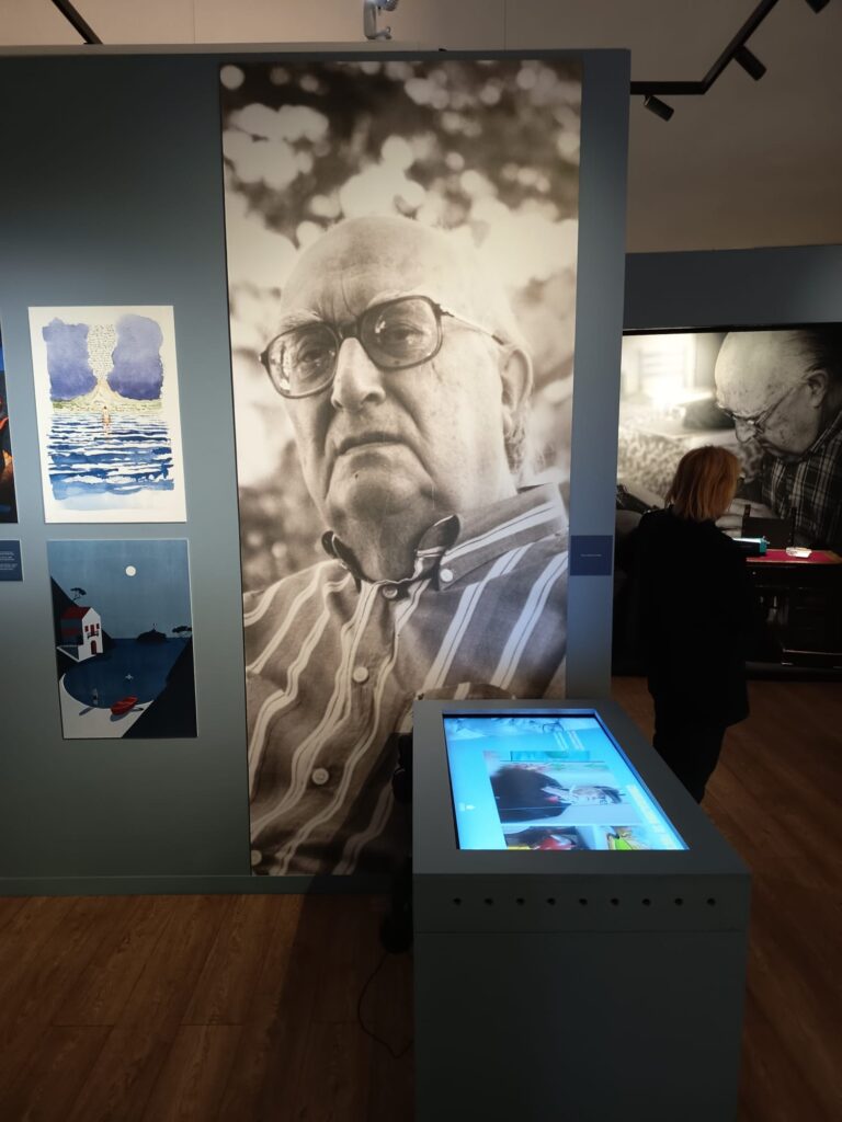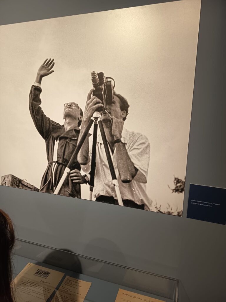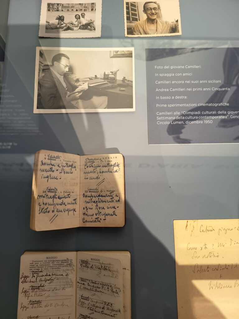 (di PAOLO CILONA)—È aperta al pubblico romano e non solo la mostra che riguarda il compianto scrittore e regista Andrea Camilleri. La mostra è stata organizzata dalla Società Dante Alighieri in collaborazione con il Fondo Andrea Camilleri, nell’ambito di un progetto di celebrazione del centenario della nascita dello scrittore. Una iniziativa importante che percorre le tappe di vita e professionali di Andrea Camilleri. In bella vista quaderni, appunti, foto giovanili, le copertine dei libri di scuola, le sue poesie. Un pannello spiega egregiamente la continuità del suo impegno e della sua passione culturale e artistica, che nell’opinione corrente vengono di solito ricondotte al formidabile successo del suo tardo esordio di narratore e alla sua vena creativa. Come dichiarò lo stesso Andrea Camilleri, è stato il teatro la sua vera passione. Un teatro “infinito”, perché tutto il molteplice operare di Camilleri lo ha visto percorrere la scena, concepire l’esistenza, i rapporti interumani, l’orizzonte sociale, la coscienza culturale e l’espressione artistica entro una prospettiva, appunto teatrale. Camilleri nel corso della sua vita ha inseguito, sperimentato e plasmato il teatro in tutte le forme e con tutti i supporti possibili:dalla gestione della scena teatrale all’intreccio tra visione, movimento, architettura, corporeità, vocalità e gestualità. Ha agito in prima persona nell’interesse del teatro drammatico con le cosiddette arti “sorelle” pittura, scultura e musica e con i media della modernità novecentesca (radio, televisione e cinema). Nella sua narrativa emerge un teatro quasi del tutto siciliano. Una mostra davvero interessante che porta il visitatore a conoscere da vicino uno dei più importanti personaggi del XX secolo ovvero Andrea Camilleri l’ideatore del commissario Montalbano.