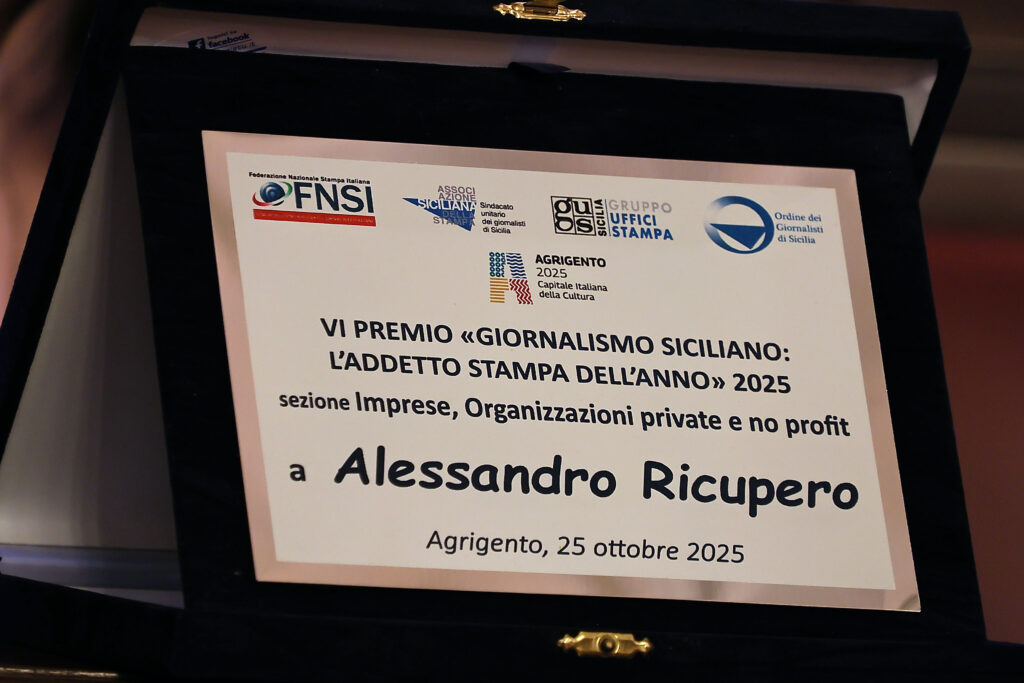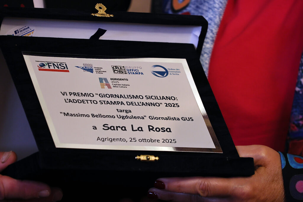 Sabato 25 ottobre, nella sala Luigi Giglia di Agrigento, si è svolto l’evento formativo per giornalisti nell’ambito del quale sono stati consegnati i premi GUS “Giornalismo siciliano: l’addetto stampa dell’anno”. Al corso, (dal titolo “Quei ‘tesori’ di informazione e comunicazione: professionalità, strategie e competenze per la promozione del patrimonio culturale”), valido per 4 crediti formativi e con inizio alle 9.30, ha portato i suoi saluti il presidente del Libero Consorzio Giuseppe Pendolino. A seguire, gli interventi dei giornalisti Orazio Vecchio (presidente del Gruppo Uffici Stampa della Sicilia), Tiziana Tavella (presidente del Consiglio regionale di Assostampa), Simonetta Trovato (addetta stampa Vie dei Tesori e Agrigento 2025), moderati da Marina Mancini (vicepresidente del GUS Sicilia). Il tema della formazione è legato alla scelta del Direttivo del GUS di svolgere ad Agrigento l’edizione 2025 del Premio, con il supporto della sezione provinciale di Assostampa, nell’anno in cui la città è Capitale italiana della Cultura. A margine degli interventi, sono stati premiati i giornalisti individuati dalla giuria quali vincitori della sesta edizione del premio: Nuccio Molino, capo dell’Ufficio Stampa del Comune di Catania, per la sezione “Pubblica Amministrazione”; Alessandro Ricupero, direttore dell’Ufficio Comunicazioni Sociali dell’Arcidiocesi di Siracusa, per “Imprese, organizzazioni private e no profit”; Sara La Rosa, responsabile dell’Ufficio Stampa del Parco dei Nebrodi, per la targa “Giornalista GUS” intitolata a Massimo Bellomo Ugdulena. A Rosa Di Stefano è stato assegnato uno speciale riconoscimento per la sua attività a supporto del sindacato.