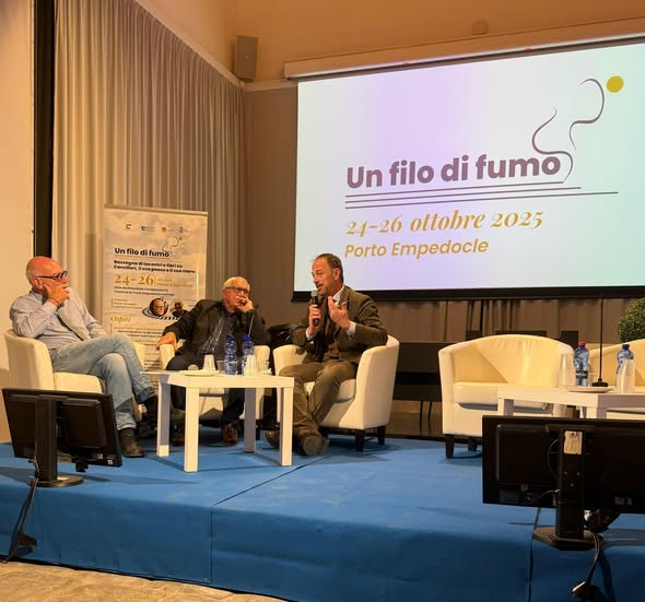 Una straordinaria conversazione tra l’Ammiraglio Vittorio Alessandro Presidente di Ri-Connessioni, il Professore Alfonso Maurizio Iacono e Stanislao de Marsanich, dedicata al Paesaggio, al Premio del Paesaggio e alla presentazione del Parco Letterario Andrea Camilleri, ha concluso a Porto Empedocle la prima edizione della rassegna UN FILO DI FUMO .