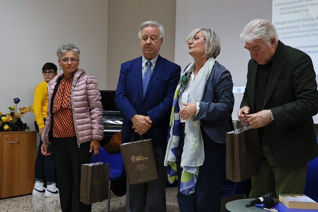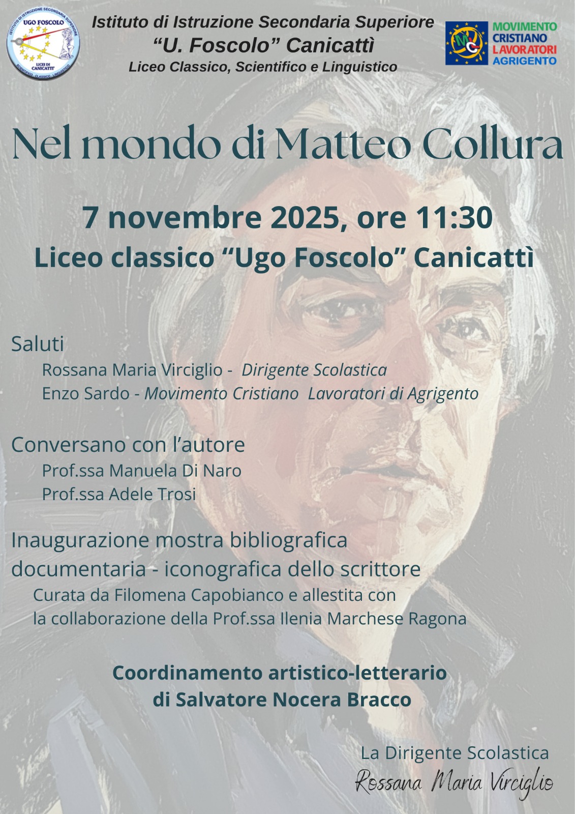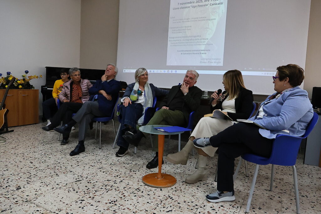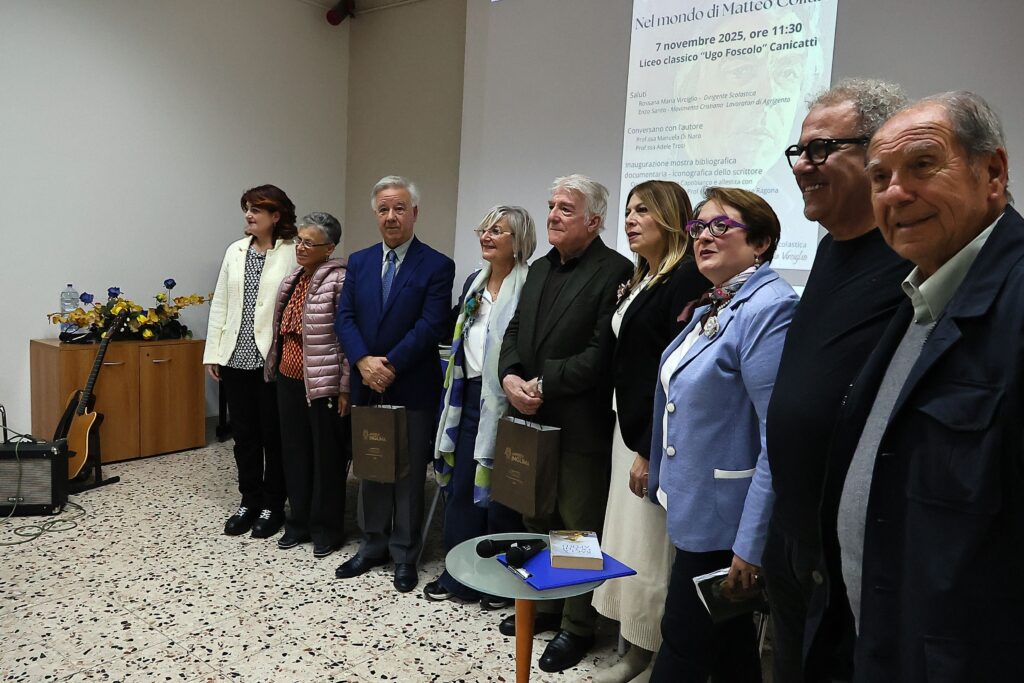 “Nel mondo di Matteo Collura” è il titolo di una mostra bibliografico-documentaria inaugurata nel Liceo Ugo Foscolo di Canicatti. Grande la partecipazione e l’interesse mostrato dai liceali che hanno seguito le indicazioni esplicative delle curatrici della mostra, Filomena Capobianco collaborata dalla prof. Ilenia Marchese Ragona. Dopo i saluti della dirigente scolastica Rossana Maria Verciglio e da Enzo Sardo del movimento cristiano lavoratori (tra l’altro promotore della mostra già allestita in omaggio agli 80 anni di Collura, alla Lucchesiana di Agrigento, alla Fondazione Sciascia e nei saloni del Palazzo Bellacera di Comitini) hanno conversato con lo scrittore le prof. Manuela Di Naro e Adele Troisi , mentre Enzo Sardo ha voluto rimarcare agli studenti come Collura sia già nella letteratura italiana (e non solo) e ci resterà per sempre. “Per questo-ha concluso Sardo- abbiamo ritenuto opportuno organizzare tale manifestazione nei tre liceii di Canicatti diretti da Rossana Maria Verciglio”. Infine il coordinatore artistico-letterario Salvatore Nocera Bracco ha coinvolto gli studenti del liceo in un serrato dialogo con lo scrittore Matteo Collura. Ecco per i nostri lettori una dettagliata fotogallery dell’evento letterario e pedagogico.