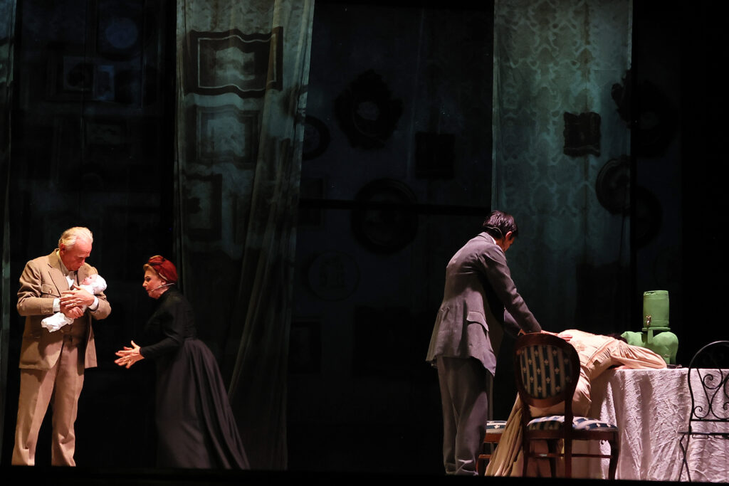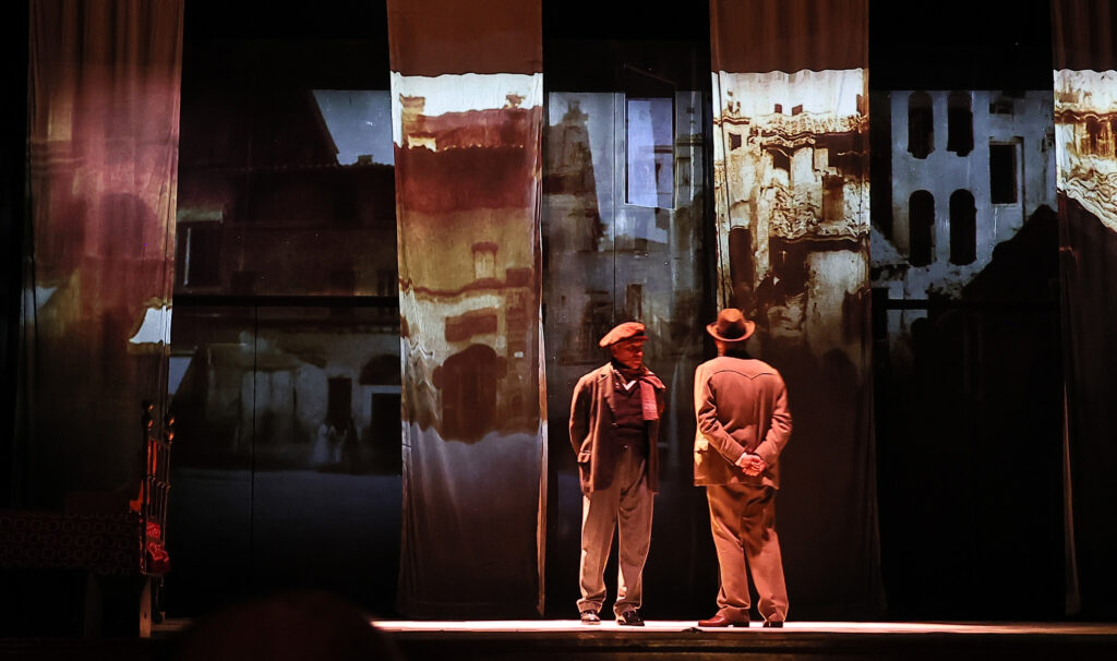 Forse ritmi spessi lenti, proiezioni scenografiche sfocate e luci velate e cupe non hanno contribuito a tenere molto acceso l’interesse del pubblico.