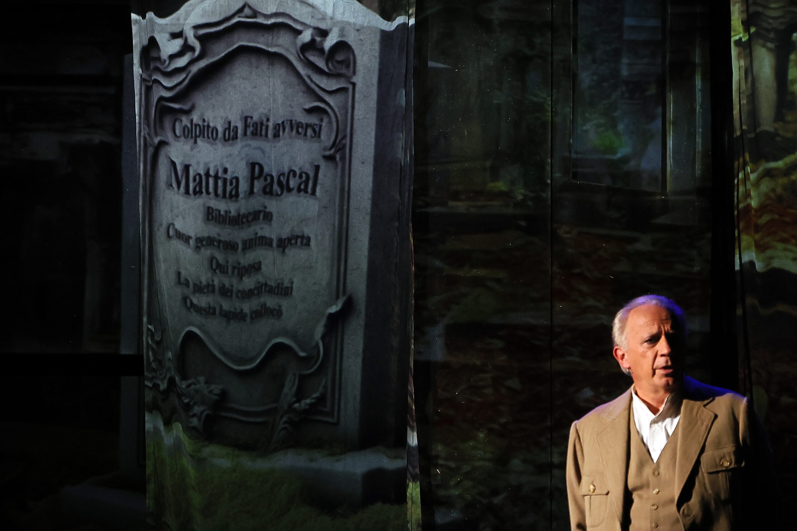 Il romanzo di Luigi Pirandello è sicuramente un classico della letteratura del Novecento, uscito a puntate nel 1904 e poi ripubblicato in volume lo stesso anno. La storia narrata non crediamo che ancora ci sia chi non la conosca anche solo per averla dovuta studiare nelle scuole medie o superiori e magari per aver temuto l’interrogazione sull’uomo che simulò due suicidi, che diventò un altro come Adriano Meis per poi tentare di riappropriarsi della vita sospesa per più di due anni. Un romanzo che in qualsiasi edizione si avvicina alle trecento pagine, un tomo corposo che aldilà della trama è quasi un manifesto del concetto pirandelliano, un’anticipazione delle commedie scritte e rappresentate, un’esposizione delle nuove idee del nuovo millennio, un’anteprima dei concetti della ‘crisi dell’io’ e del ‘doppio’, dell’umorismo e del relativismo psicologico, la prima esposizione del ‘Lanterninismo’ di Luigi Pirandello. L’impresa dell’autore dell’adattamento nonché regista Marco Tullio Giordana di riportare tutto questo in due ore di spettacolo teatrale è un cimento complesso e astruso, nonché audace. Il maggior rischio è la spersonalizzazione originale dell’opera e la realizzazione di una visione personale dell’ispirazione originale. Perché con tutto l’impegno e la fatica di rielaborazione, obbligatoriamente si dovrà operare una selezione: cosa e in che quantità mantenere del testo originale, cosa minimizzare e cosa rimarcare, cosa ignorare. E’ inevitabile quindi ‘tradire’ l’autore, per quanto ci si sforzi di restarne fedele.