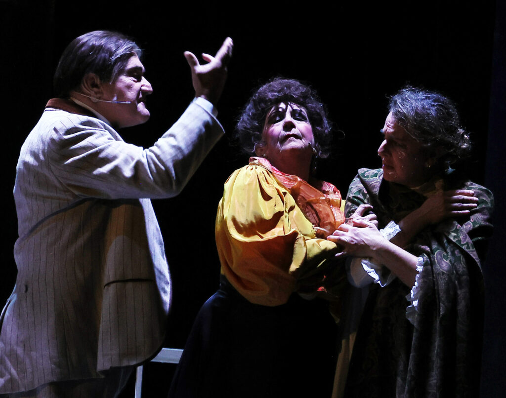 Marilù Prati interpreta la vedova Pescatore (ma anche la medium Caporale della seconda parte), suocera insopportabile che aizza il genero alla fuga dal focolare domestico; è convincente nel riportare sul palco l’odio rancoroso nei confronti di Mattia Pascal, recita il principale personaggio dell’antagonista con un voluto eccesso che riporta lo stile recitativo ante ‘realismo teatrale’. Molto composte ed espressive le performance degli altri attori che completano il cast, anche in doppi ruoli.