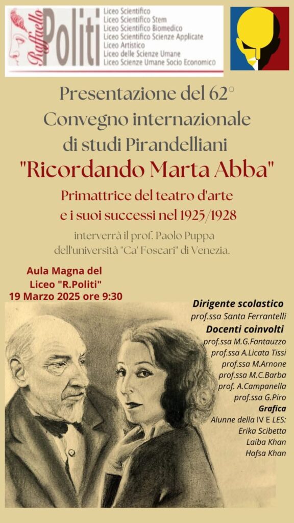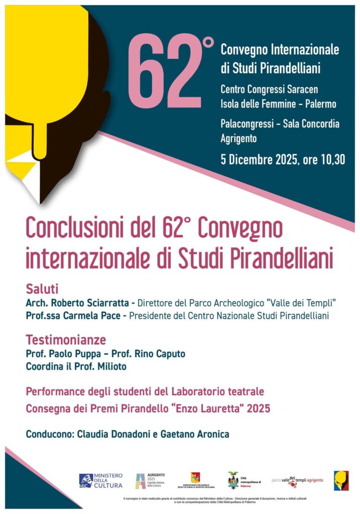 Dopo i saluti istituzionali del direttore del Parco Archeologico e Paesaggistico Valle dei Templi Roberto Sciarratta, del Commissario del Parco Archeologico e paesaggistico della Valle dei Templi di Agrigento e Presidente Fondazione “Agrigento Capitale della cultura 2025” Giuseppe Parello e del sindaco del Comune di Agrigento Franco Miccichè, seguiranno gli interventi di Annamaria Andreoli, Presidente dell’Istituto di Studi Pirandelliani e sul Teatro Contemporaneo di Roma,Virginia Asaro, scrittrice
