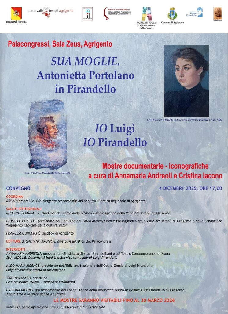 Una fitta corrispondenza epistolare, in parte inedita, consentirà di documentare la figura di Antonietta Portolano Pirandello, ricostruire e mettere in risalto le vicende familiari del drammaturgo agrigentino e far conoscere i luoghi “pirandelliani” che hanno fatto da cornice all’unione di Luigi e Antonietta.