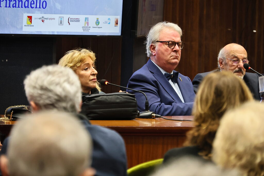 Le Mostre documentarie SUA MOGLIE. ANTONIETTA PORTOLANO IN PIRANDELLO e IO LUIGI. IO PIRANDELLO sono state aperte al pubblico nei vasti saloni del Palacongressi. Dopo i saluti istituzionali del direttore del Parco Archeologico e Paesaggistico Valle dei Templi Roberto Sciarratta, del Commissario del Parco Archeologico e paesaggistico della Valle dei Templi di Agrigento e Presidente Fondazione “Agrigento Capitale della cultura 2025” Giuseppe Parello e del sindaco del Comune di Agrigento Franco Miccichè, hanno fatto seguito  gli interventi di Annamaria Andreoli, Presidente dell’Istituto di Studi Pirandelliani e sul Teatro Contemporaneo di Roma,Virginia Asaro, scrittrice, Aldo Maria Morace,  già ordinario di Letteratura Italiana, presidente dell’Edizione Nazionale dell’Opera Omnia di Luigi Pirandello, Cristina Angela Iacono, archivista, già responsabile del Fondo Storico della Biblioteca Museo Regionale Luigi Pirandello di Agrigento. Ha coordinato l’incontro Rosario Maniscalco, dirigente responsabile del Servizio Turistico Regionale di Agrigento. Il noto attore e regista agrigentino Gaetano Aronica, direttore artistico del Palacongressi, è intervenuto con la lettura di alcuni brani tratti dalla corrispondenza Pirandello – Portolano.