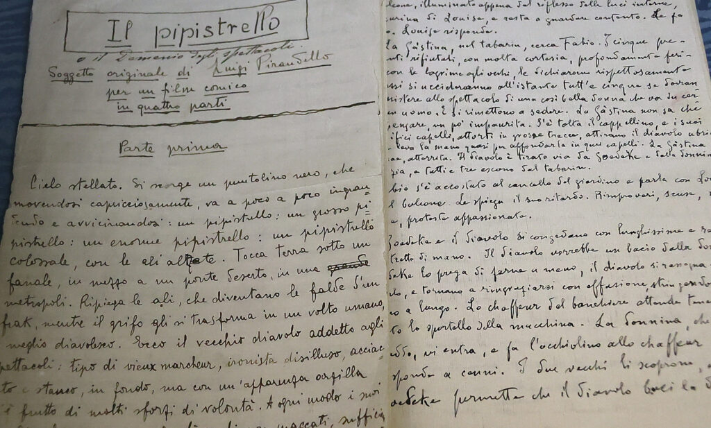 Con l’esposizione di alcuni importanti documenti, come i contratti e la corrispondenza con le case cinematografiche del tempo, Cines, Colosseum film e con la presentazione di soggetti, sceneggiature e manifesti cinematografici, vengono messi in evidenza anche i rapporti di Pirandello con il mondo del cinema, che lo vedono all’avanguardia nell’affrontare i problemi relativi alla “settima arte”.