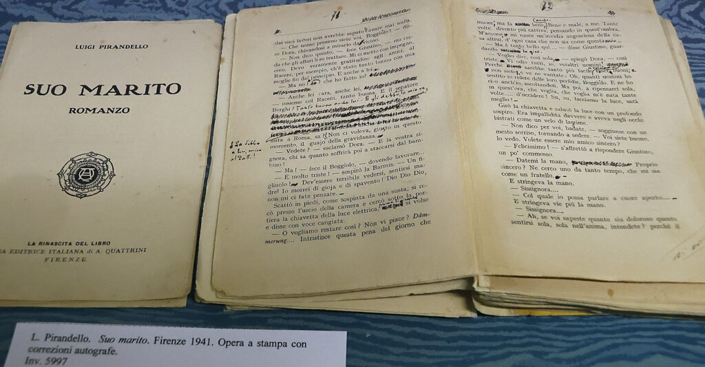I manoscritti, gli autografi esposti appartengono, alla Biblioteca Museo Regionale Luigi Pirandello, oggi struttura del Parco Archeologico e Paesaggistico Valle dei Templi di Agrigento.