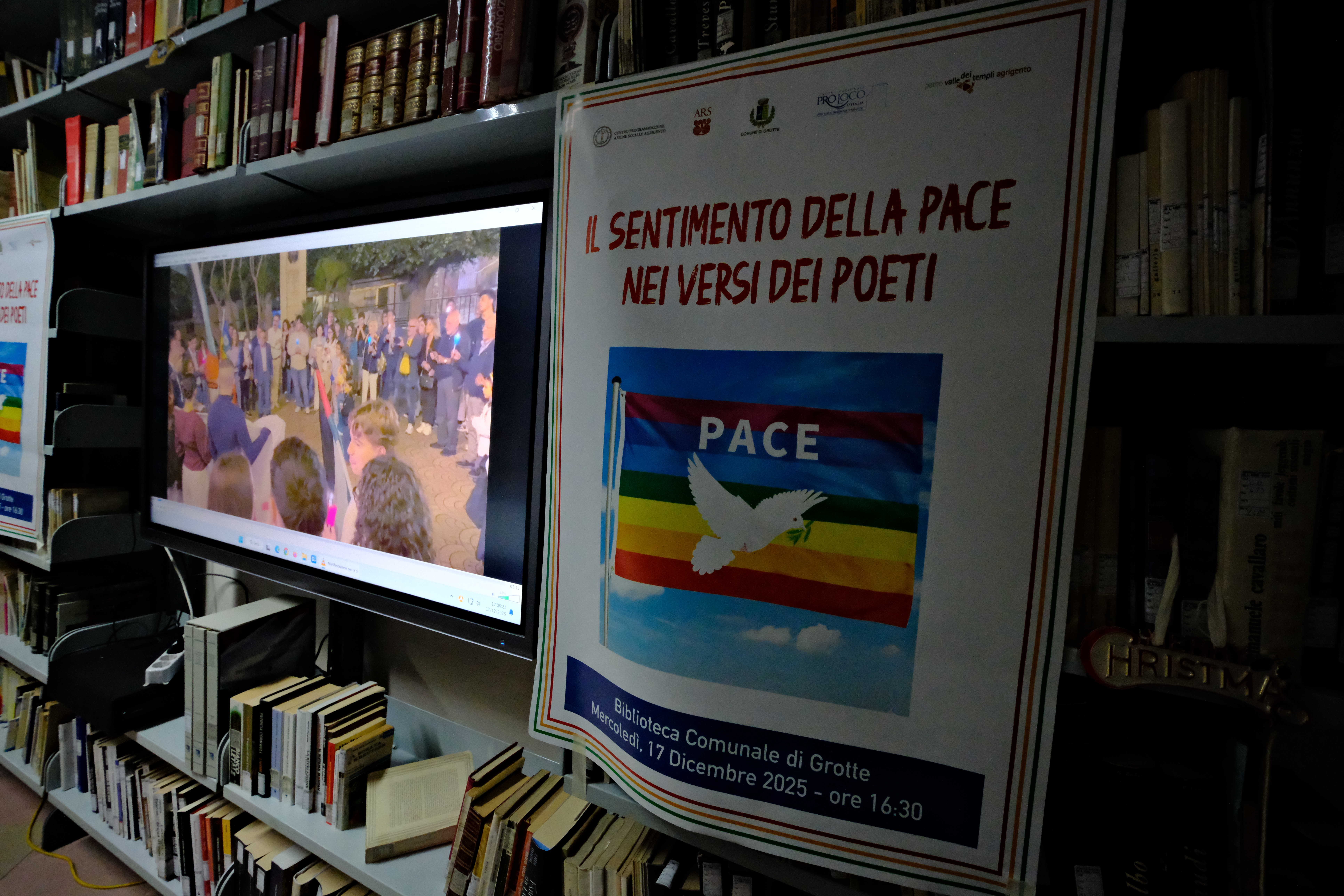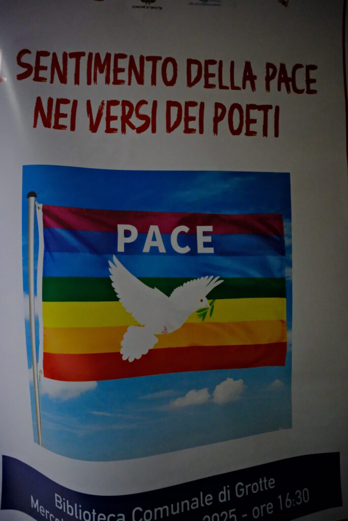 (P.C.)—Un suggestivo e penetrante messaggio per la pace nel mondo e’ stațo lanciato a Grotte nell’ambito della XXXV mostra nazionale i colori della pace e l’incontro con i poeți. Hanno esposto nella biblioteca comunale le loro tele i noți pittori Patti e Meli. Chi meglio della pittura puo’ esprimere la forza del segreto legame che unisce ogni persona al sentimento universale della pace! E’ con i colori che l’artista esprime la sua forza espressiva, îl suo messaggio, la sua speranza per un mondo caratterizzato dalla comune solidarieta’ verso gli altri. La pittura e’ un atto creativo con îl quale și manifesta una determinata visione del mondo. I colori sono veri messaggi di pace. A fare da cornice alla mostra di pittura la partecipazione dei poeți  Mariangela Morreale, Giuseppina Mira, Vera Di Francesco, Stella Camillieri, Liliana Arrigo,  Giuseppe Iati, Enzo Galvano,  Gero Miceli, che attraverso suggestive liriche hanno sottolineato nei verși îl sentimento per la pace tra i Popoli della Terra. I Sindaci di Montallegro e di Grotte Giovanni Cirillo e Alfonso Provvidenza, unitamente al presidente della Pro-Loco Filippo Vitello e tutti gli artiști presenti hanno partecipato all’accensione del Tripode della pace. Molto apprezzati sono stați gli intervenți di Diego Guadagnino, Enzo Di Natali e Francesco Curaba. La manifestazione a favore della pace e’ stată curata dal Cepasa nell’ambito della Rassegna del Premio Telamone 2025.